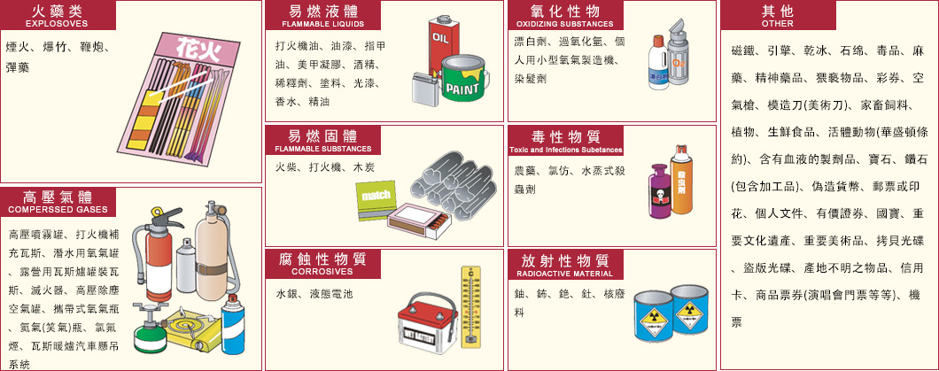● 高壓易燃氣體、液體(包括有泵頭的壓縮型護膚品、噴霧劑等)